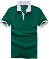 【定制】深綠色時尚小立領T恤衫訂制 男士流行款式