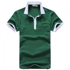 軍綠色男款T恤衫 珠地純棉 夏裝撞色款式
