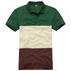 【定制】藍綠條紋T恤衫男士翻領(lǐng)短袖時尚來襲款式訂做