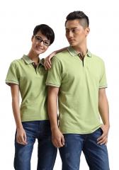 嫩黃色珠地純棉POLO衫,領袖間條撞色,男女時尚t恤衫制作