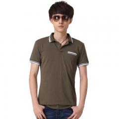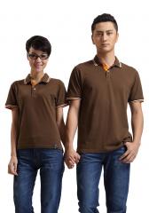 咖啡色珠地純棉POLO衫,領袖間條撞色,男女時尚t恤衫制作