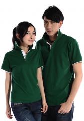 墨綠色珠地棉POLO衫款式,領袖間條撞色,男女時尚款定制