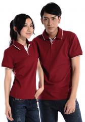 棗紅色珠地純棉POLO衫,領袖白色間條撞色,男女時尚款式 1