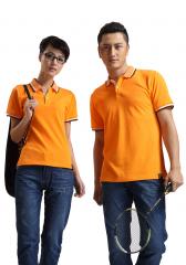 橙黃色珠地純棉POLO衫,領袖間條撞色,男女時尚款式定制