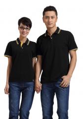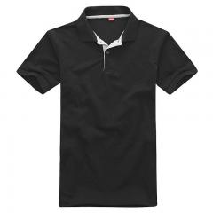黑色珠地純棉t恤衫,領袖間條撞色,門襟撞色款式制作