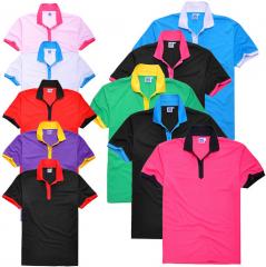翻領短袖t恤衫,襯衫格子衣領定制,幾十個顏色可選,刺繡企業logo