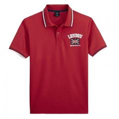 大紅色珠地純棉POLO衫,領袖間條撞色,門襟撞色男女款定制