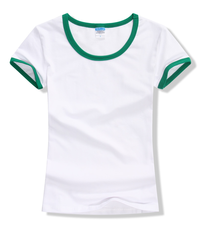 女裝圓領短袖T恤衫,領袖撞色款式,7個顏色現貨T恤衫批發